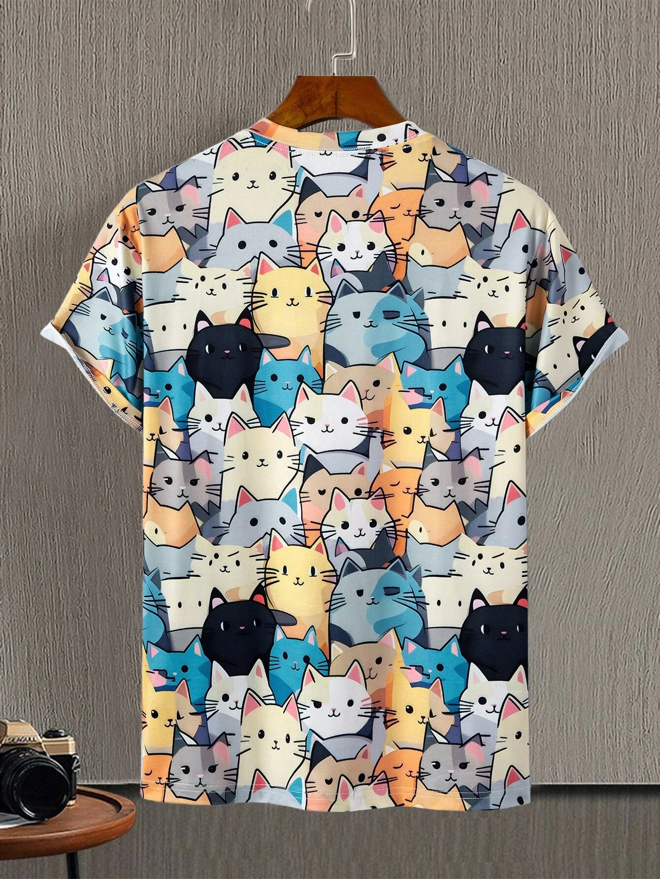 Home Men Apparels Shirts Men’s T-Shirts Summer Cute Cat Pattern 3D Print