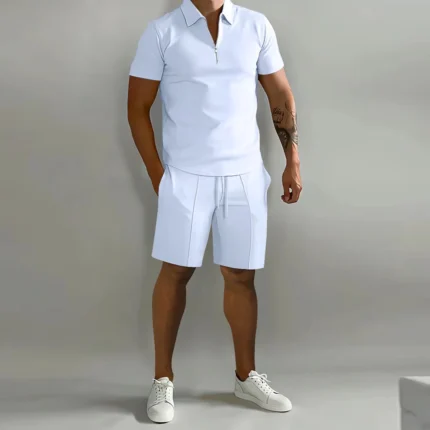 Men’s suit solid color polo shirt lapel vertical strip pants