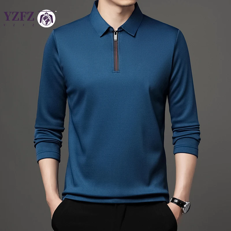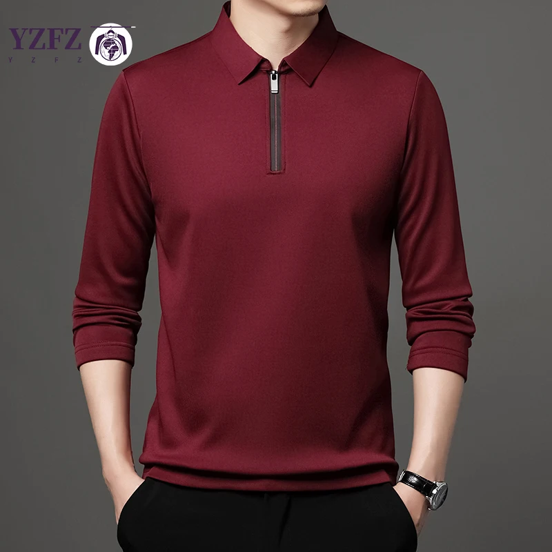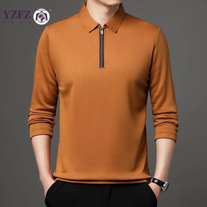 Home Men Apparels Shirts Solid Color Long Sleeve Polo Shirt Fashion