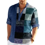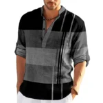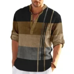 Home Men Apparels Shirts Striped Color Block 3D Print Henley Shirts Men’s