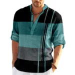 Striped Color Block 3D Print Henley Shirts Men’s