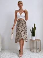 Women Casual Print Tie Side Wrap Skirt